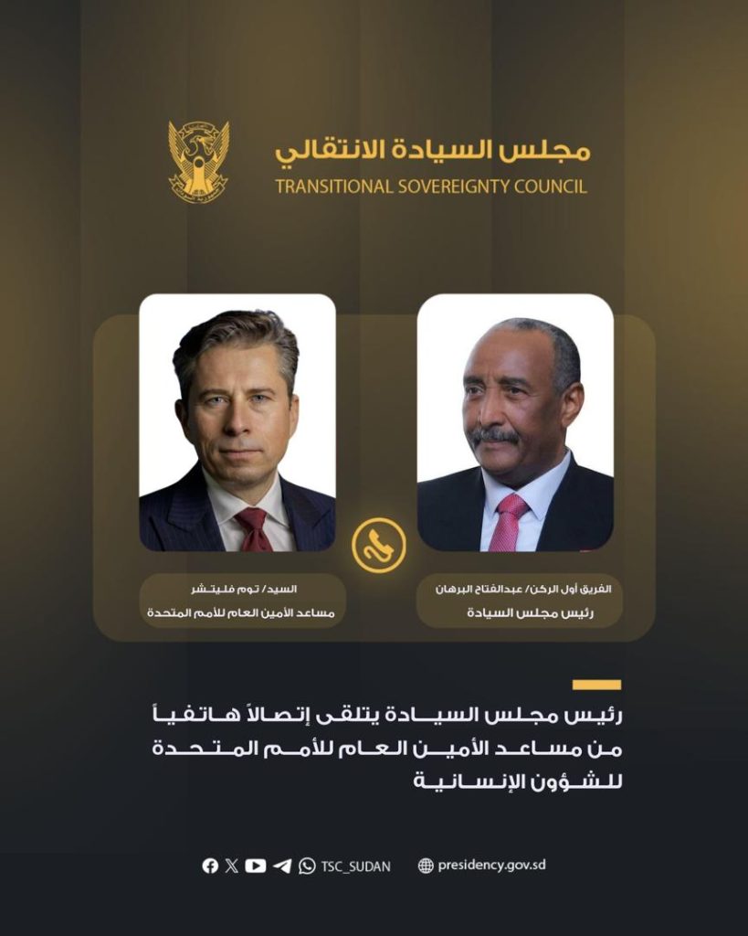 رئيس مجلس السيادة الانتقالي يتلقى اتصالاً هاتفياً من مساعد الأمين العام للأمم المتحدة للشؤون الإنسانية