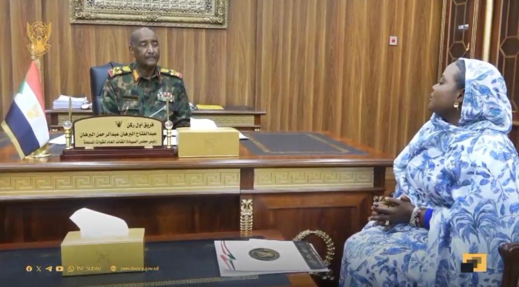 رئيس مجلس السيادة يلتقي رئيسة مكافحة العنف ضد المرأة والطفل بحضور رئيس اللجنة الوطنية المشتركة للطوارئ الإنسانية